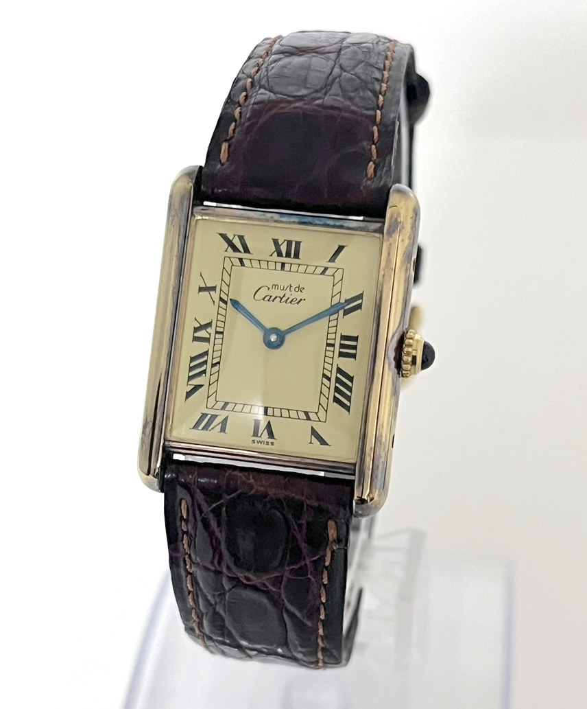 上品なアイボリー文字盤とブルースチール針がとてもカルティエらしい1本。